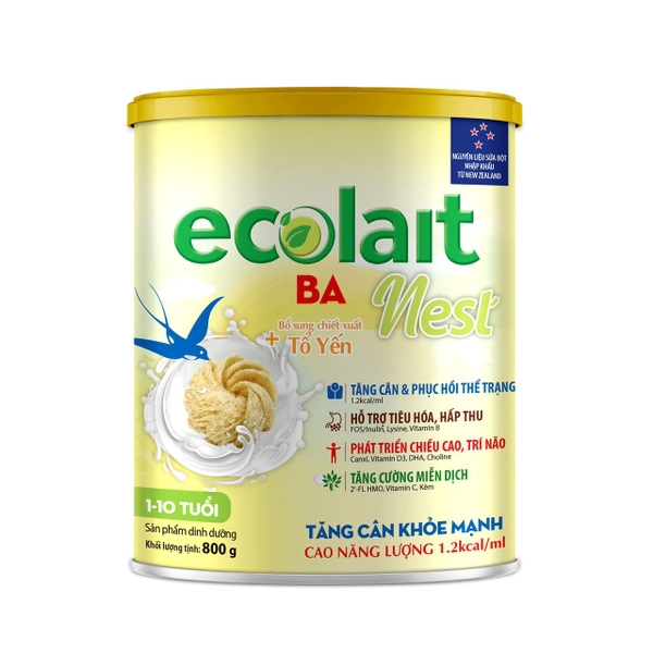 - Với việc bổ sung Tổ Yến và trong giai đoạn dịch bệnh Covid hiện nay, Ecolait BA Nest rất phù hợp cho bé phục hồi, lấy lại thể trạng.